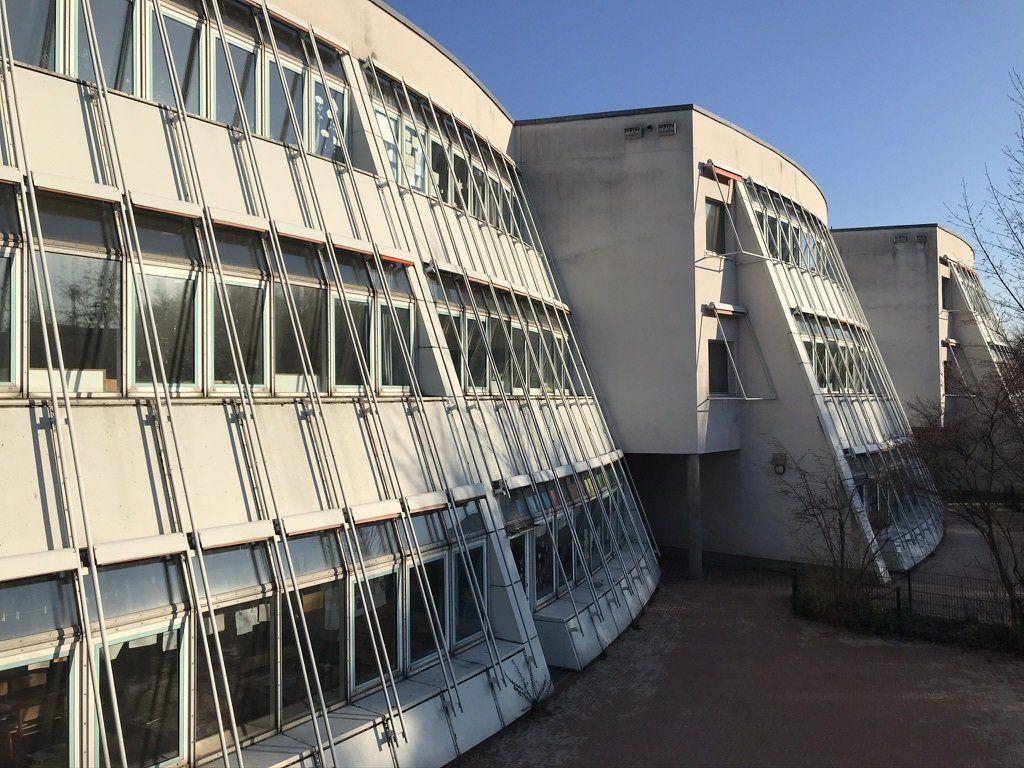 Unser Schulgebäude ist ein preisgekrönter IBA-Entwurf der Architekten Schalach und Wischhusen (Bauzeit 1987 - 1990). Es gilt heute noch als architektonisches Vorbild für ein Schulgebäude und wird immer wieder von Architekten aus dem europäischen und außereuropäischen Ausland zu Studienzwecken besucht.
